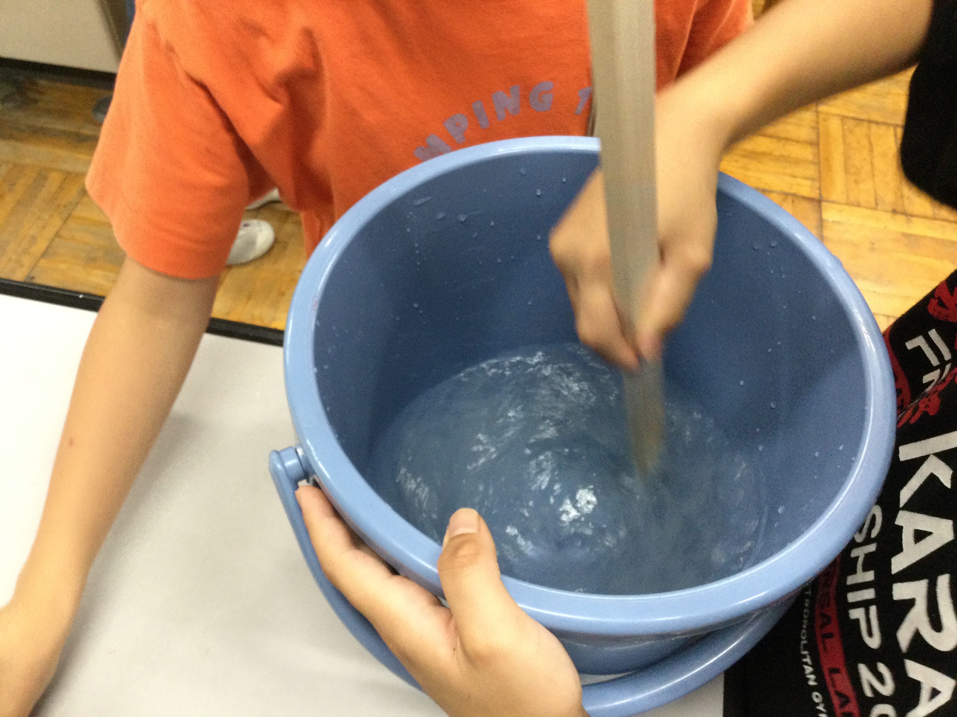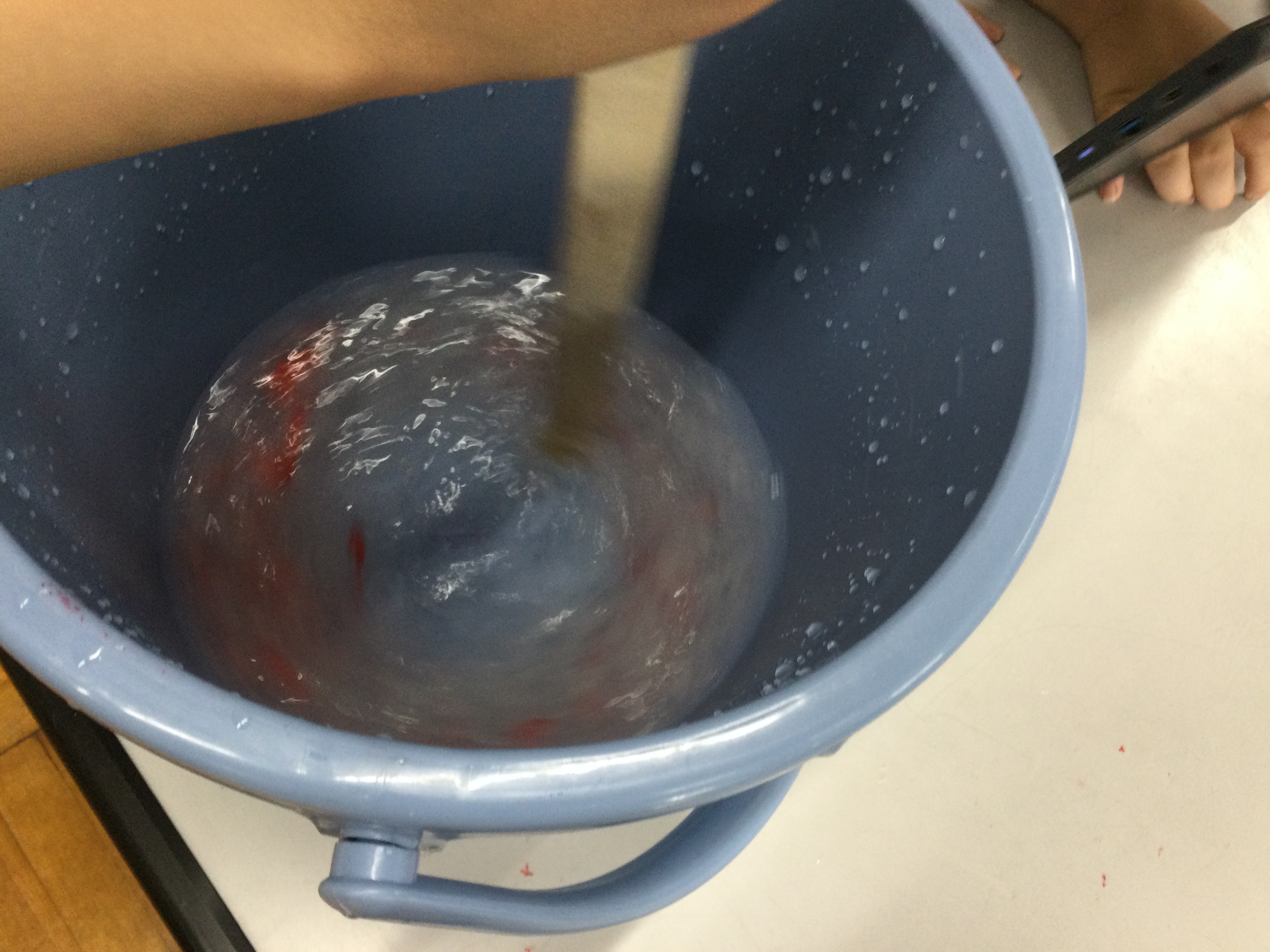 バケツの中に台風モデルをつくる実験を通じて、台風の構造や風の強さについて理解を深める。
